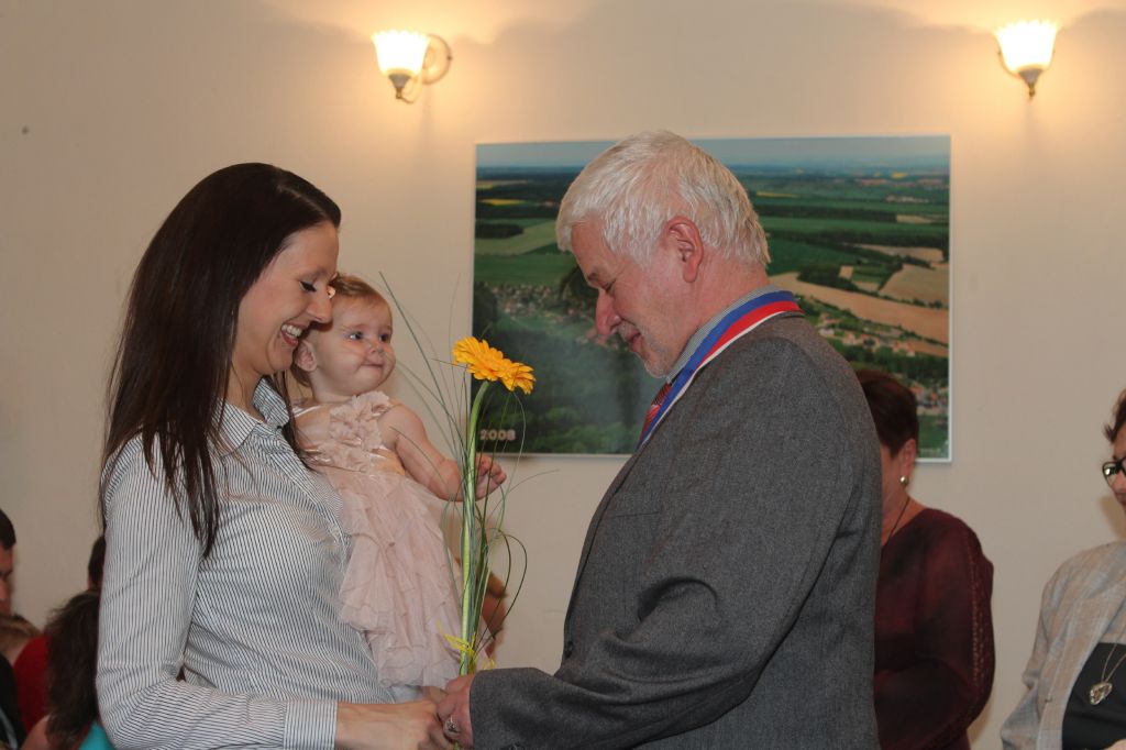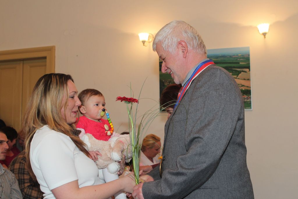 11 nových občánků přivítal starosta obce JUDr. Zdeněk Hejhal spolu s členkami obecního zastupitelstva Dagmar Korbelovou a Alenou Holubovou, za hojné účasti rodičů dětí a jejich blízkých.