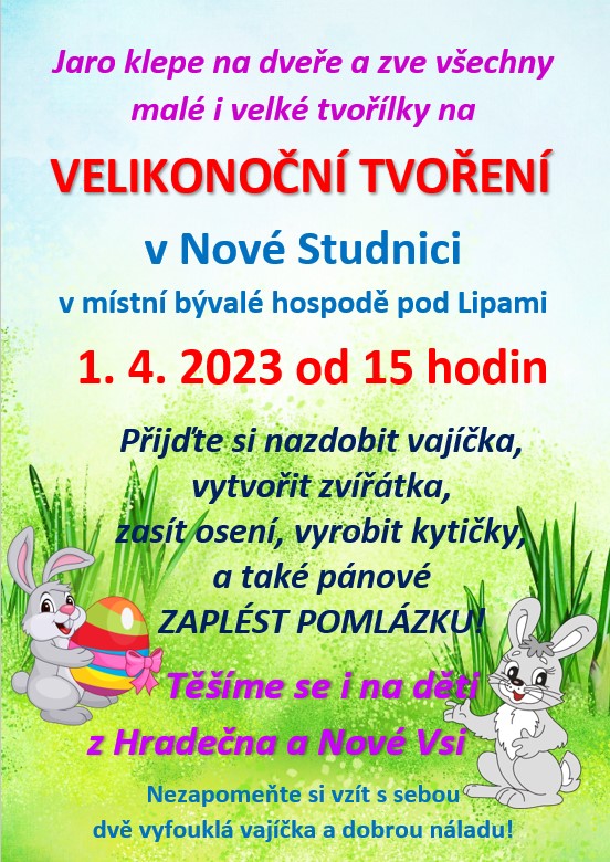 Jarní tvoření pro děti i dospělé z Nové Studnice, Hradečna i Nové Vsi