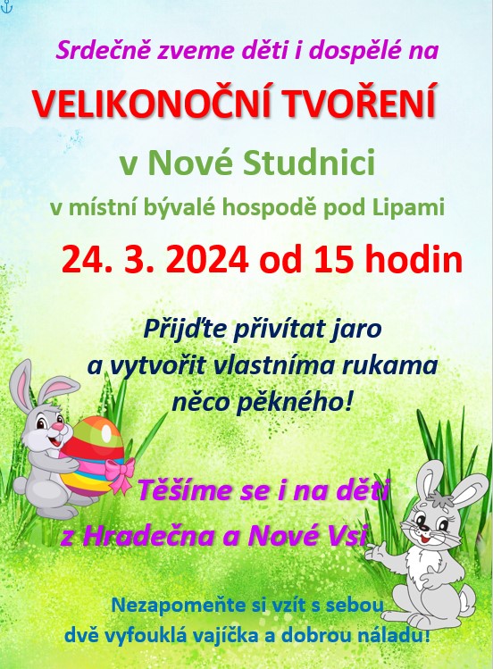 V Nové Studnici se v neděli bude velikonočně tvořit!